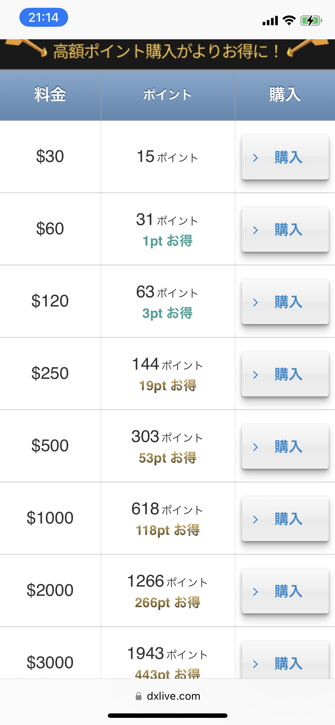ですのでここではDXLIVEでポイント購入する際の料金(金額,値段,価格)について詳しく解説します。